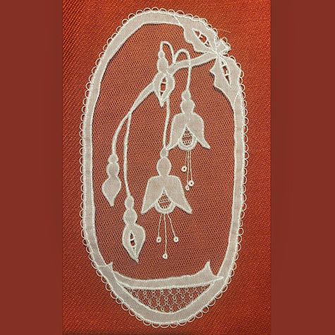 Course Description: Theresa has created an original Carrickmacross Lace fuchsia design, a popular motif in Irish laces, for this workshop. It is designed for beginners but also will appeal to the intermediate lace maker. Theresa will lead you through the traditional technique of appliqué, guipure, loops and pops.