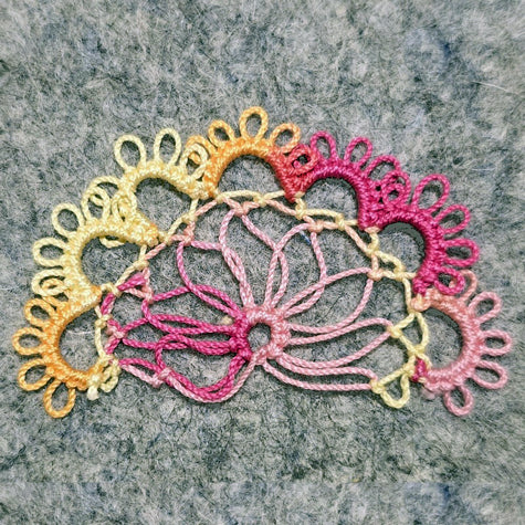 Prerequisite: Encouraged for those who have a basic understanding of Mediterranean Knotted Lace (Igne Oya). Tatted rings, chains, picots