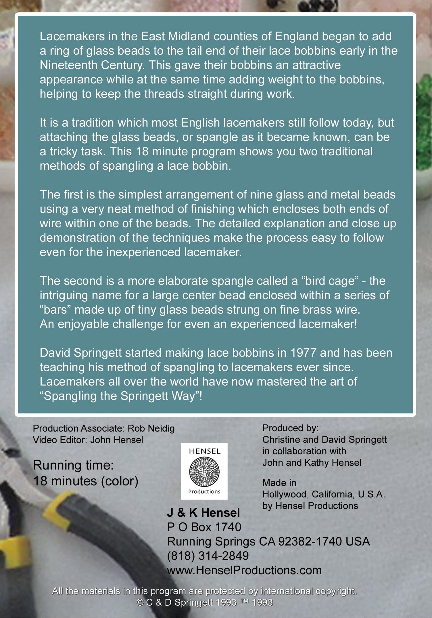 This 18 minute program shows you two traditional methods of spangling a lace bobbin.